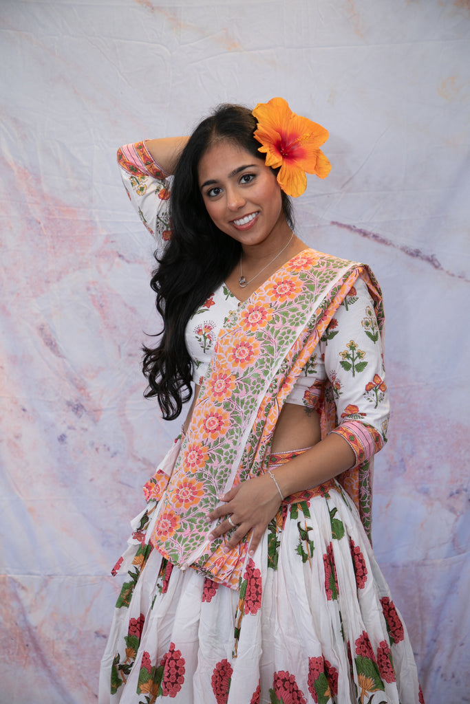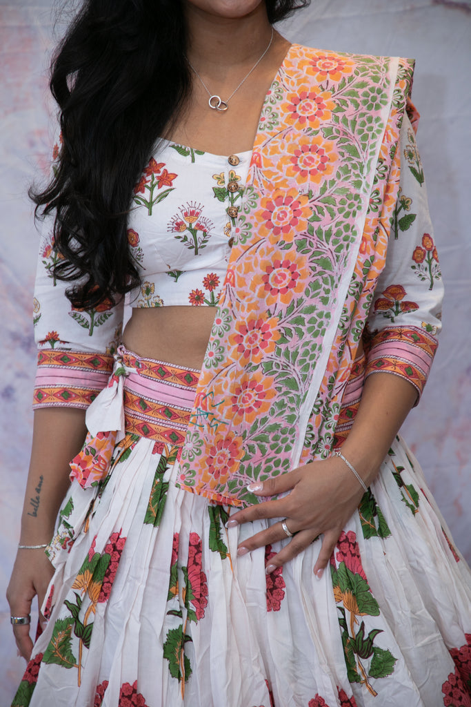 Material: hand block printed cotton and handloom ikat