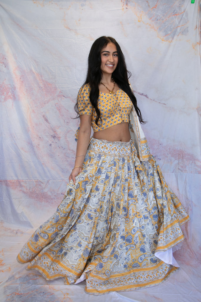 CUSTOMIZATION: All Skirts can be custom to fit. "Add to Cart" the size that is closest to your body type. Use the "Leave a Note with your order" box to submit your measurements. Refer to our size chart for the perfect fit. longer blouses to cover the mid section are also available, please let us know in the note box if you would like a longer top. Lower and higher necklines are also customizable, please add any changes in the notes box. All skirts come standard 39 inches long unless specified in the note box when ordering.